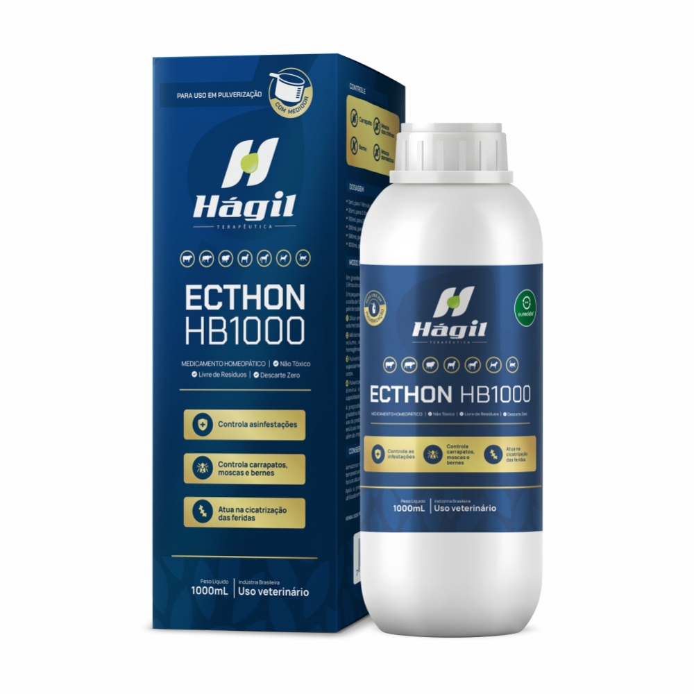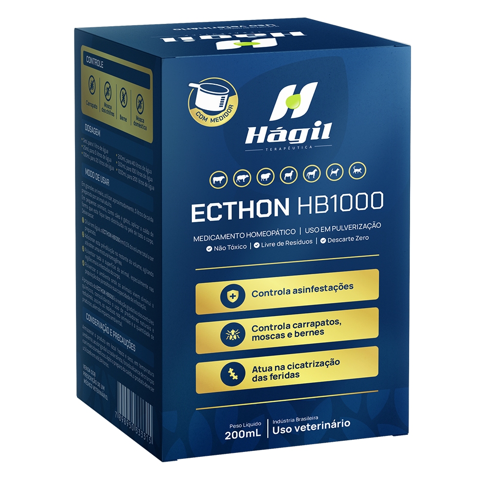 Medicamento homeopático para pulverização em ruminantes de leite e corte, e equinos para o controle parasitário e puro em feridas abertas para o controle de miiases. Indicado para uso simultâneo com os antiparasitários Hágil de via oral.