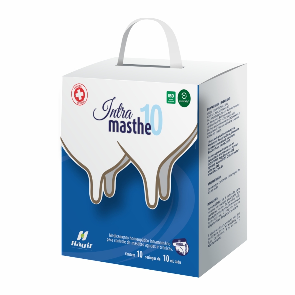 O Intramasthe 10 contém um complexo de medicamentos homeopáticos capazes de estimular o sistema de defesa do organismo dos animais intensificando a produção de anticorpos e mediando o funcionamento das células de defesa (células somáticas), sendo indicado na cura das mastites clínicas. Composto por medicamentos homeopáticos que combatem as inflamações da glândula mamária e suas consequências como alterações de leite, empedramentos e queda da produção leiteira ou agalaxia.
