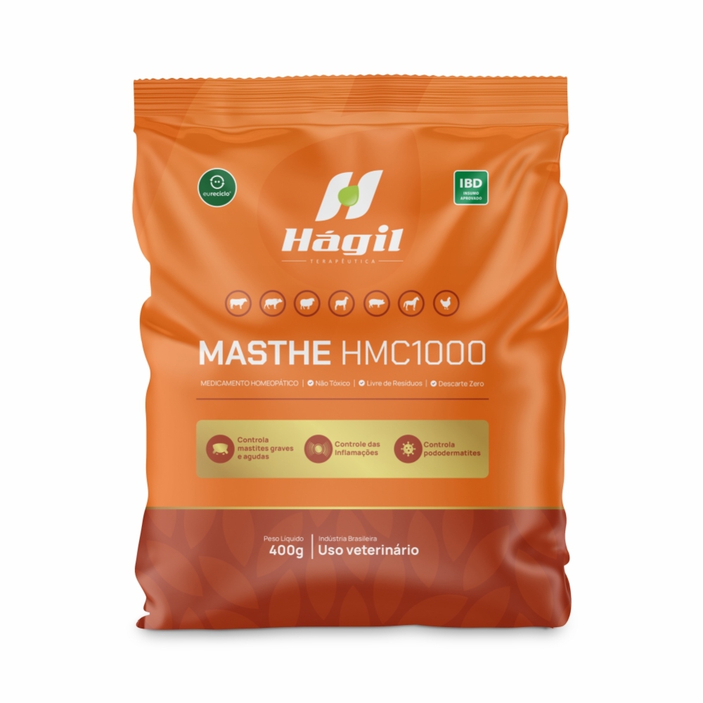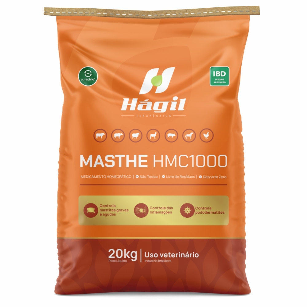 Masthe HMC 1000 é um dos principais medicamentos da linha Hágil usado nas mamites patogênicas e ambientais, podendo ser usado de forma curativa, em doses mais elevadas e em maior frequência ou de forma preventiva, em doses menores e menos constantes, de forma oral, através do suplemento mineral, ração, água de bebida ou diluído em água e oferecido pela via oral.